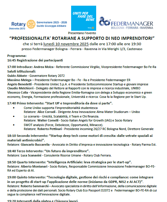 Relatore: Roberto Pettinari – Presidente incoming 26/27 RC Bologna Nord, Direttore Generale